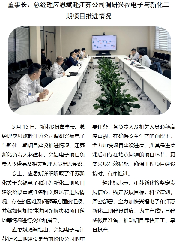 董事长、总经理应思斌赴江苏公司调研兴福电子与德赢下载官网二期项目推进情况